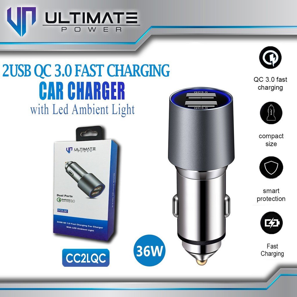 Ultimate Power PD+QC Fast Charging Car Charger with LED Ambient Light ini adalah sebuah charger mobil yang dirancang dengan model terkini yang compact dan menawan.