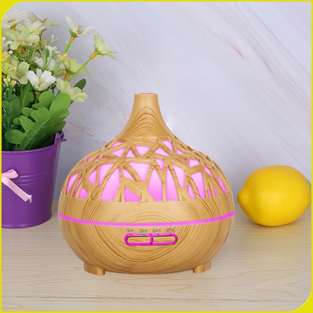 Detail Ultrasonic Air Humidifier Aromatherapy 500ml Night Light Tekstur kayu