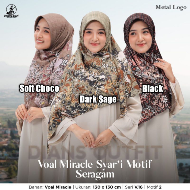 Detail Umama - Voal Miracle Syar'i Print Metal Logo Kerudung Motif Segi Empat Umama Scarf Original