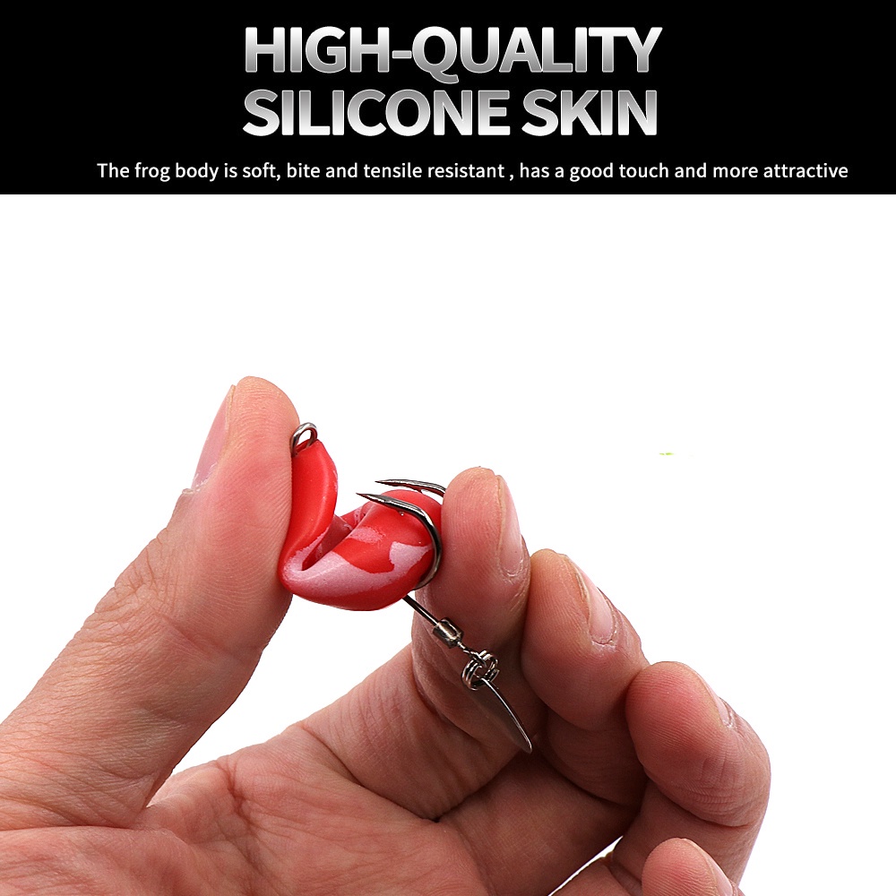 1. Tubuh katak mengadopsi teknologi pelapisan multilayer, bahan karet, yang lebih lembut, dan desain mata katak 3D menarik dan realistis, yang sangat menarik bagi ikan target.