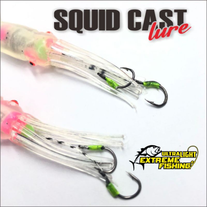 - Umpan tipe softlure - Umpan bentuk baby cumi ini sudah di lengkapi dengan pemberat dan assist hook - Menyala dalam gelap - Sangat pas untuk umpan micro atau UL - Ada 2 pilihan berat : 6,5 gram dan 9 gram - Semua ukuran berat memikili ukuran panjang yang sama yaitu 10 cm ( panjang keseluruhan) dan 7,5 cm ( untuk panjang softlurenya )