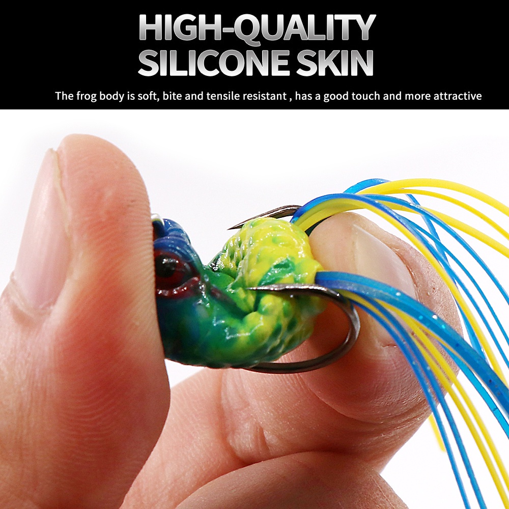 1. Tubuh katak mengadopsi teknologi pelapisan multilayer, bahan karet, yang lebih lembut, dan desain mata katak 3D menarik dan realistis, yang sangat menarik bagi ikan target.