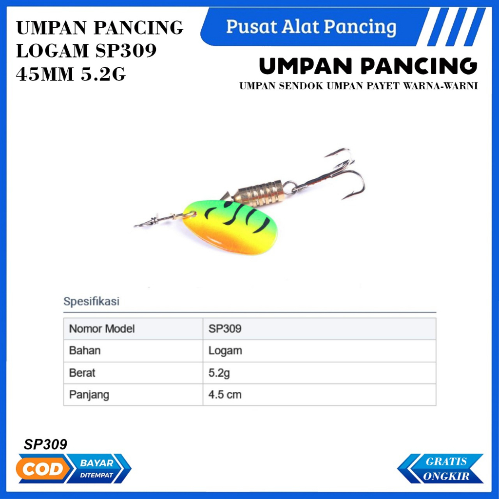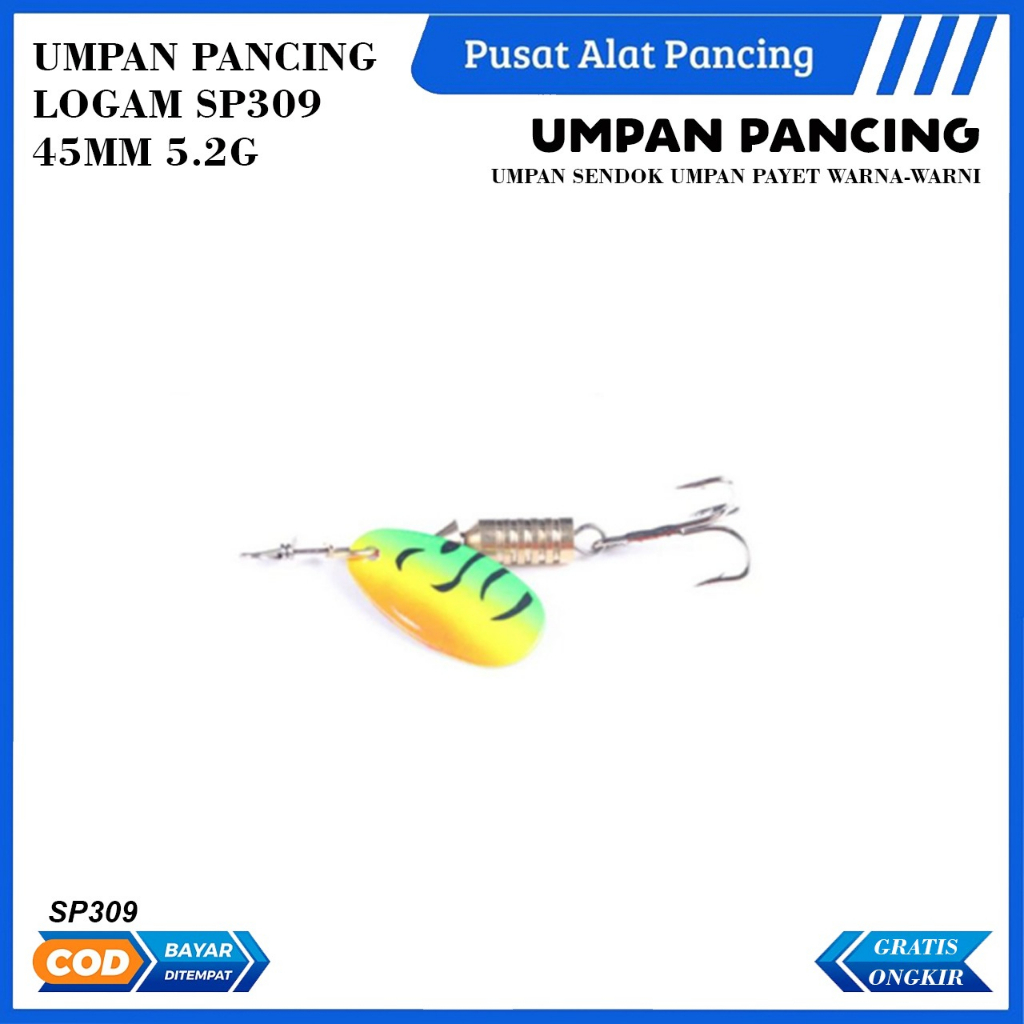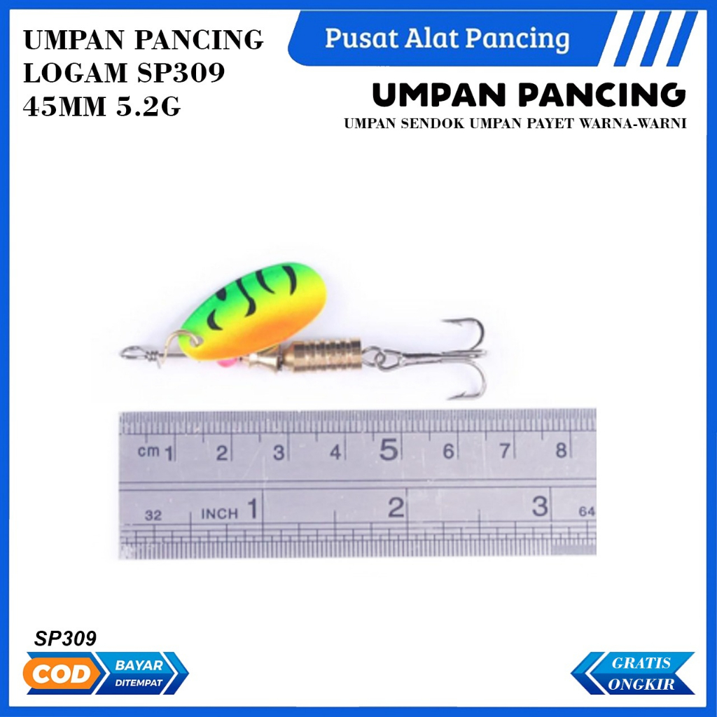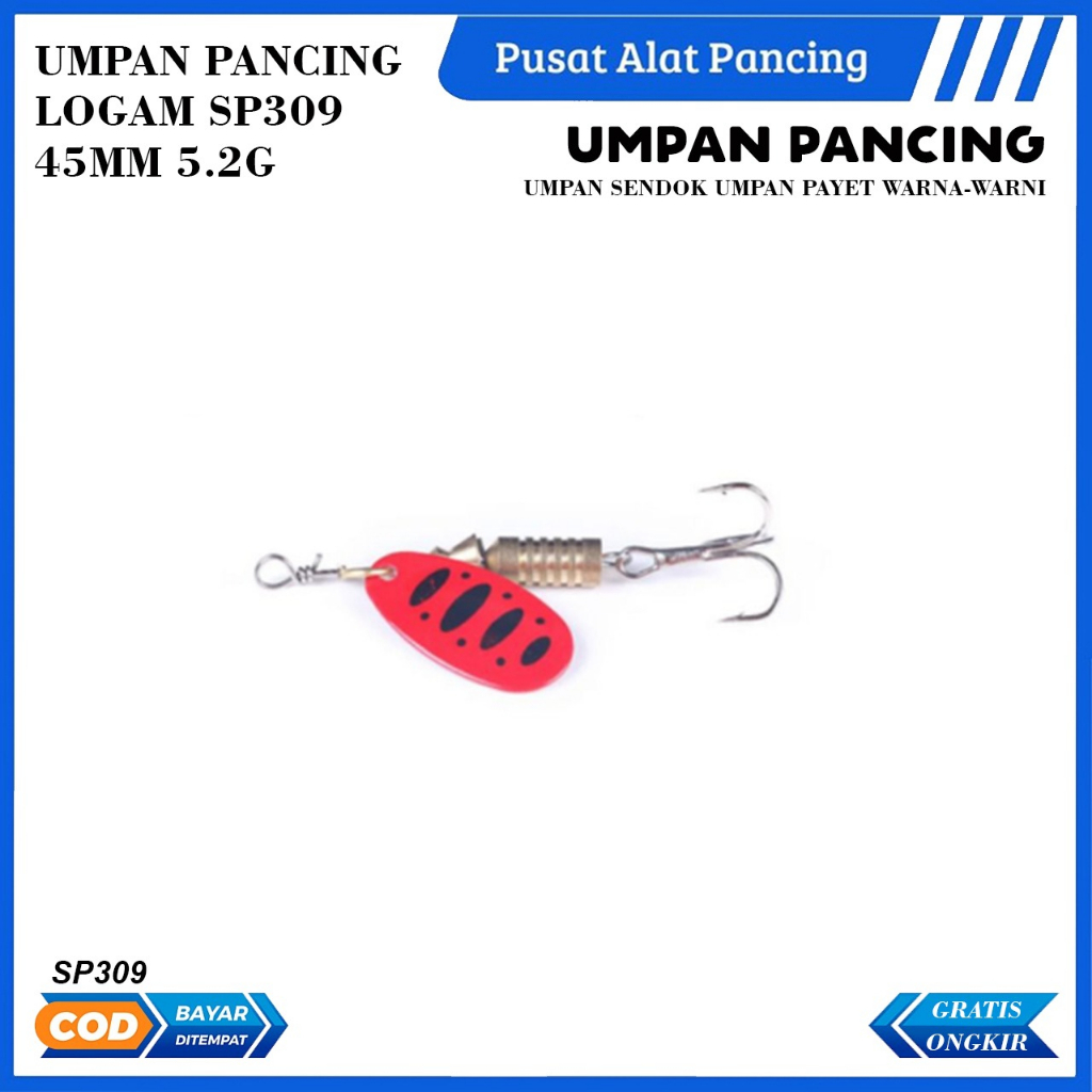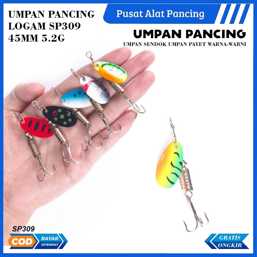 Umpan Pancing Logam SP309 45MM 5.2G Umpan Sendok Umpan Payet Warna-warni Umpan Pancing Umpan Keras Umpan Pemintal