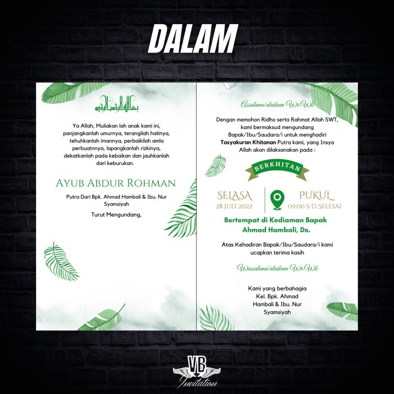 Souvenir & Party Supplies > Perlengkapan Pesta > Kartu Ucapan > UNDANGAN KHITAN TASYAKURAN AQIQAH ISLAMI TERBARU TERMURAH AESTETIC ELEGAN CUSTOM FOTO FREE PLASTIK VBK 002