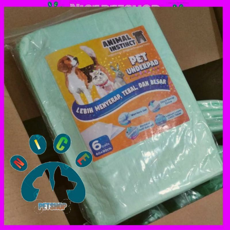 Under Pad isi 6 Ukuran 60 x 90 Perlak Alas Kandang Anjing Kucing Uder pad