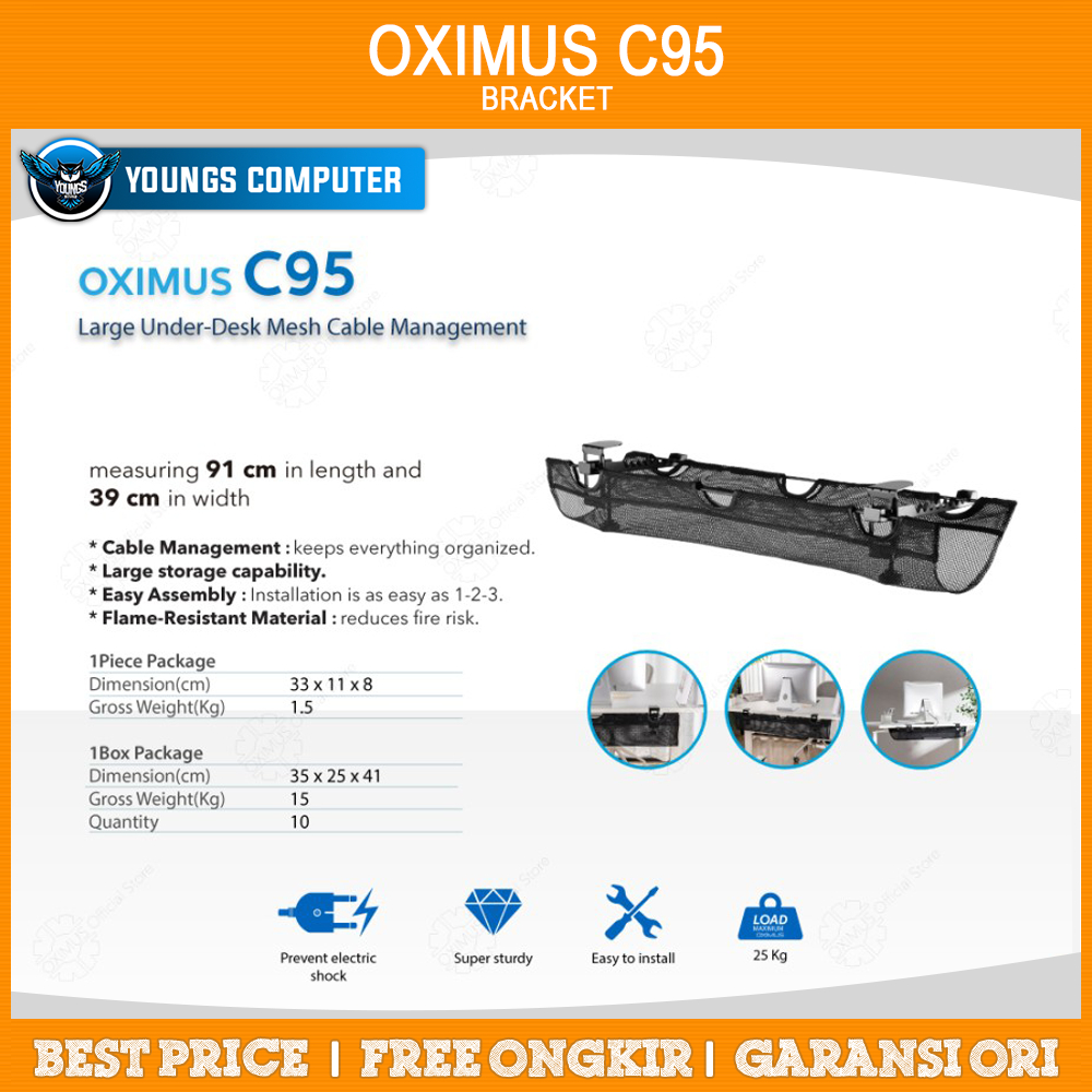 OXIMUS C95 merupakan storage besar dipasang di bawah meja untuk merapikan kabel kabel, adaptor dan peralatan support lainnya. Sehingga menjadi lebih rapi, lebih nyaman, dan amanuntuk pemakaian. Dengan beberapa lobang ventilasi untuk mempermudah jalur kabel dan ukuran yang besar, sehingga dapat menampung lebih banyak peralatan lainnya.