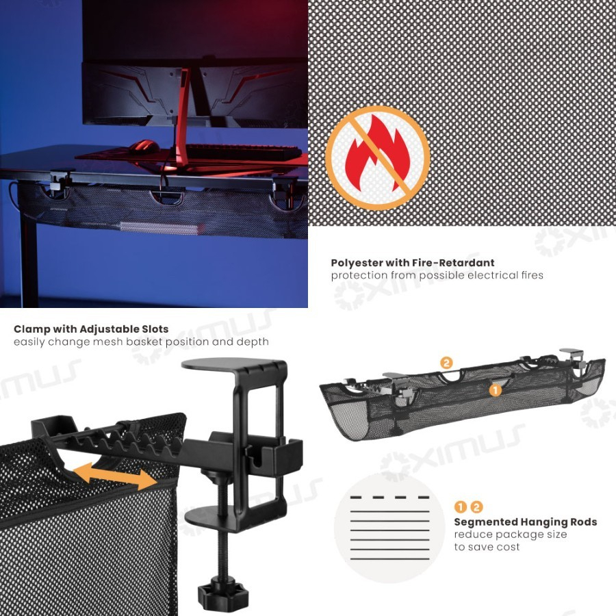 ● Organizer Kabel Mesh yang Luas untuk Meja Bawah ● Manajemen Kabel: menjaga semua kabel tersusun rapi ● Kemampuan Penyimpanan yang Luas ● Bahan Tahan Api: mengurangi risiko kebakaran ● Pemasangan yang Mudah: instalasi semudah 1-2-3