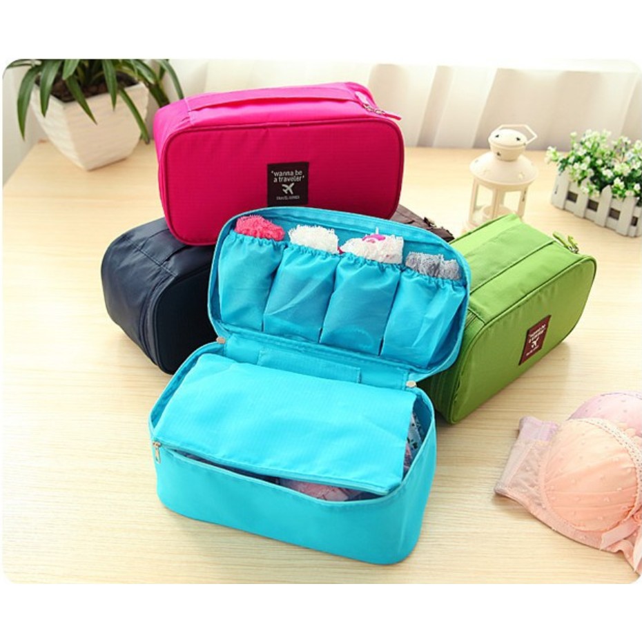 Spesifikasi : - Memiliki empat kantong dibagian depan untuk menyimpan underwear, terdapat satu tas kecil (secret bag) di dalamnya, dan space untuk tempat bra, serta ada tali pegangan tangan, sehingga terlihat lebih rapi dan enteng untuk dibawa saat traveling