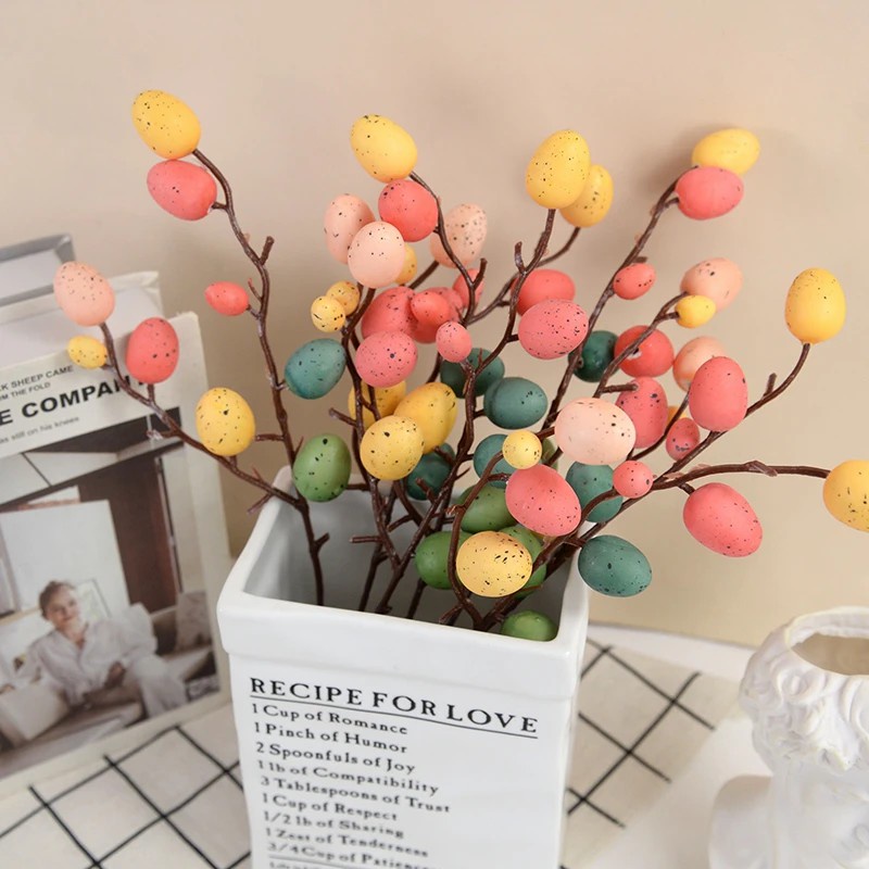 Perlengkapan Rumah > Dekorasi > Dekorasi Lainnya > [Unggulan] 1pc Telur Paskah Berry Batang Warna-Warni Daun Spring Cabang Meja Hiasan Bunga Rangkaian Bunga Perlengkapan Pesta