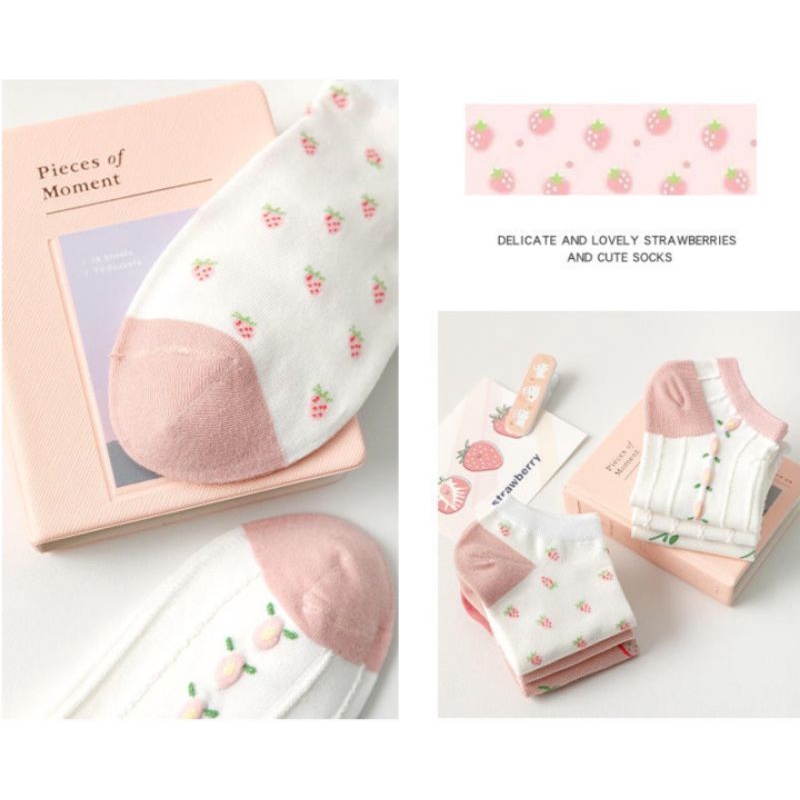 Detail [UNIK88] Kaos Kaki Wanita Fashion Motif Strawberry Bunga Kaoskaki Pendek Semata Kaki Korea Import