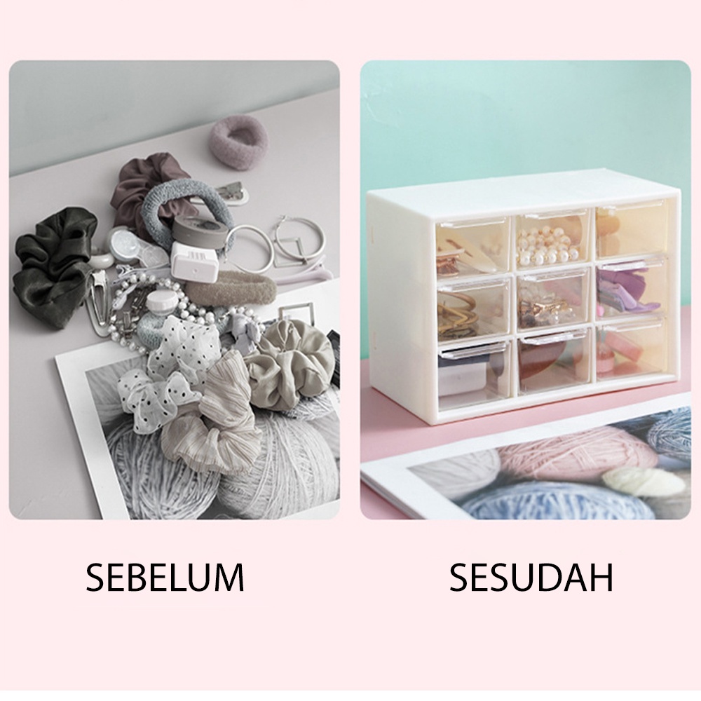 Rak kotak penyimanan aksesoris ini Terdiri dari 9 Laci dengan volume 1 L