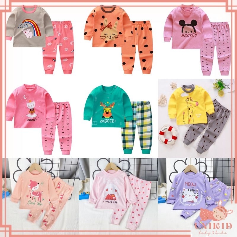 UNIKID SETELAN PANJANG BAYI PEREMPUAN STELAN ANAK PEREMPUAN STELAN BAYI LAKI LAKI IMPORT PIYAMA SET PANJANG BAJU TIDUR BAYI DAN ANAK KECIL