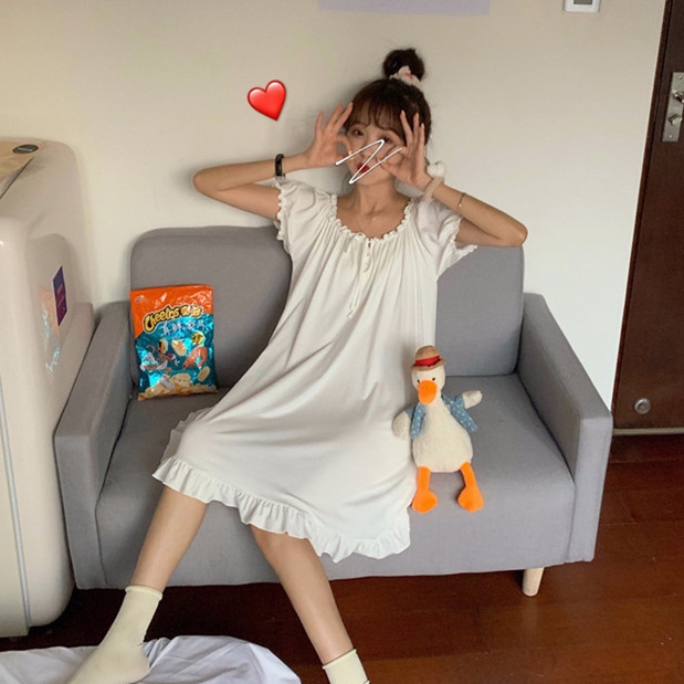 Pakaian Wanita > Pakaian Tidur & Piyama > Daster > UNINICE 【Barang spot】INS Baju Tidur Lengan Pendek Longgar Lucu Ukuran Jumbo Yang Bisa Dipakai Ibu Hamil