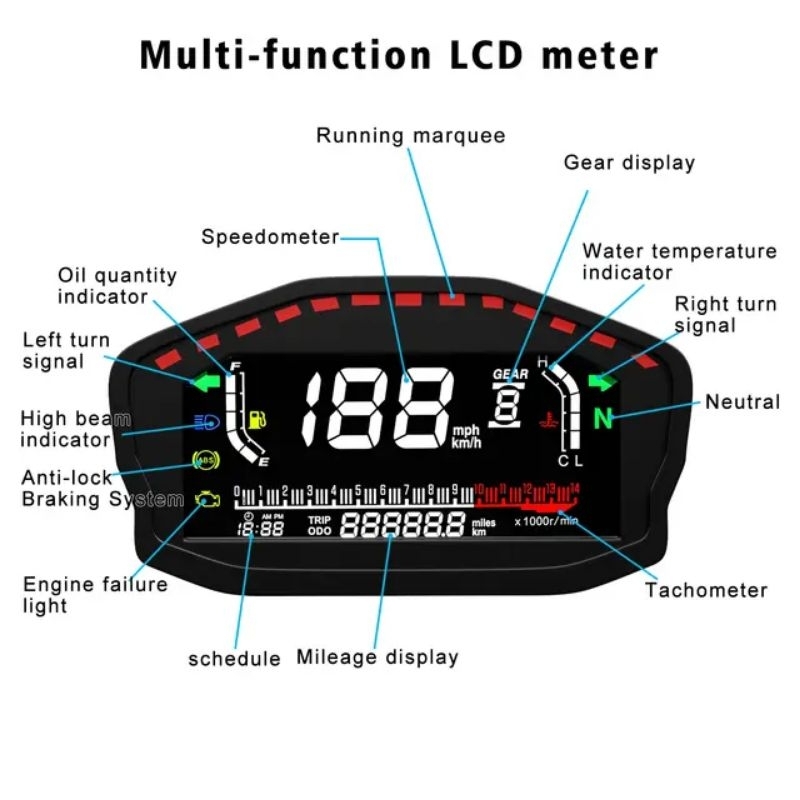 Universal Motorcycle LCD Backlight Tachometer Odometer Speedometer For BMW Honda Ducati Kawasaki Yamaha