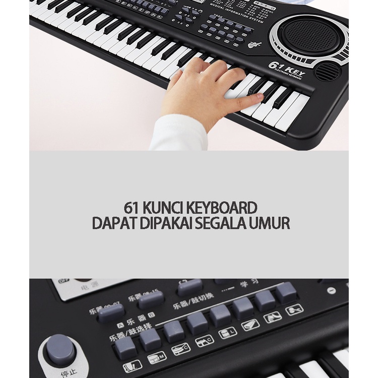 Piano-6104 ✨Overview of Digital Electronic Keyboard 61 Keys : Keyboard electronic ini wajib dimiliki bagi Anda yang ingin belajar piano. Dengan key sebanyak 61, Anda dapat memainkan semua jenis lagu kekinian maupun lagu klasik. Cocok untuk anak-anak yang ingin berlatih piano sejak usia dini.