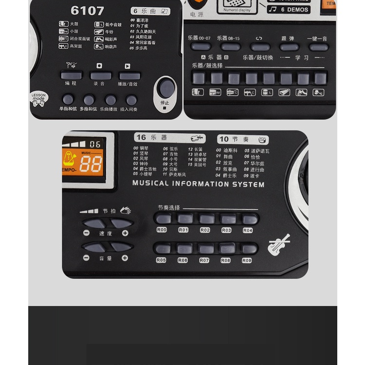 『✨Fitur Produk✨』 💦Detail produk: tuts piano standar 22MM, tuts piano 1:1, nyaman untuk disentuh 💦Suara surround stereo dengan speaker ganda 💦Mendukung pemutaran headset audio eksternal 💦Mode catu daya ganda, soket plug-in untuk digunakan, penggunaan baterai luar ruangan (6 baterai AA perlu disiapkan sendiri)