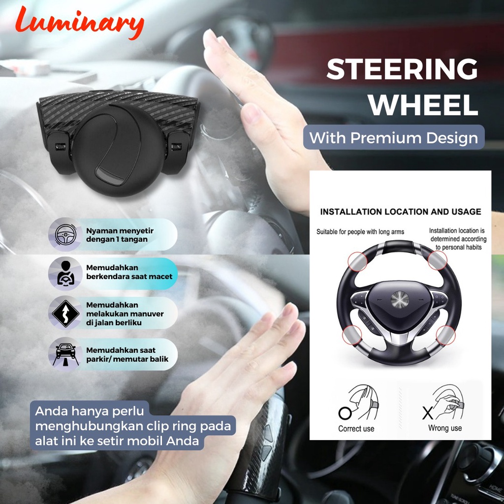- Keterangan : * Alat ini dapat dipasangkan dengan sangat mudah pada setir mobil Anda, * Anda hanya perlu menghubungkan clip ring pada alat ini ke setir mobil Anda, * Dan mengencangkannya dengan baut. * Alat ini cocok digunakan pada setir mobil dengan diameter antara 3.5 - 4 cm pada bagian handle nya.