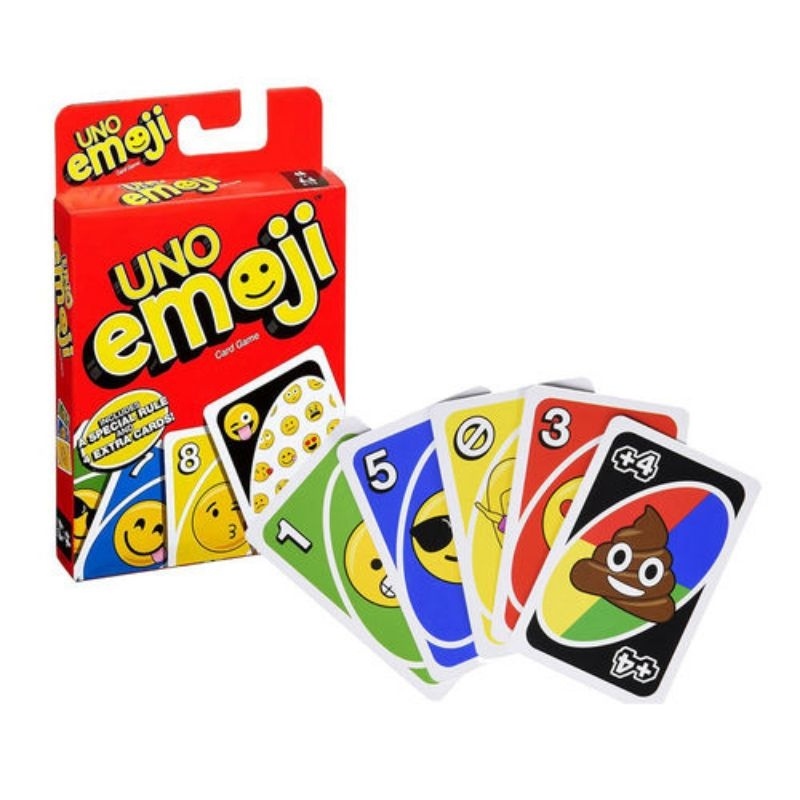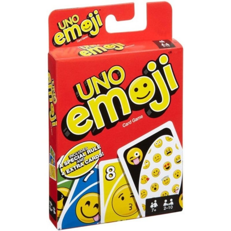 Uno emojis there is also a new type of action card, when you play it along with an emoji face card, the next player has to make and hold the face shown on that card. If they don't hold the expression for two turns, they have to draw four cards. It's a hilarious twist to the world's most beloved family game.