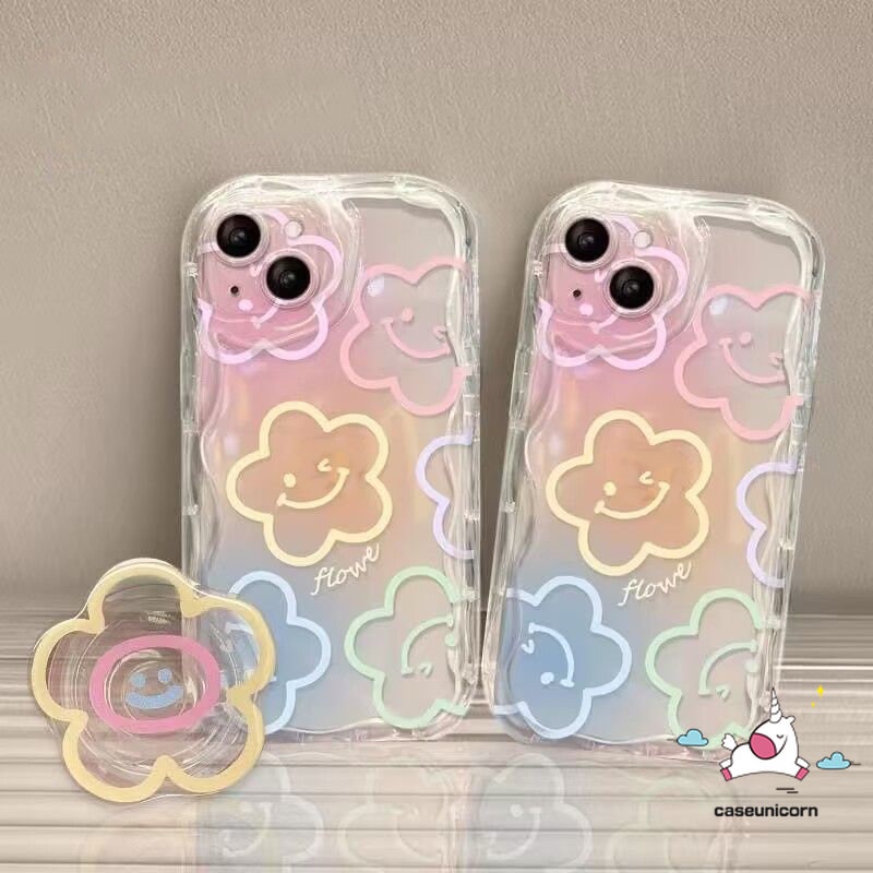 Detail Untuk Realme C53 C35 C55 C11 C21Y C33 C25Y C30 C25 9i 5s 5i 7i 6i C20 C25s C12 C31 C17 C15 C21 C3 C1 Lucu Colorful Smile Flower Stand Bracket Kartun Lembut 3D Bergelombang Curved Edge Case