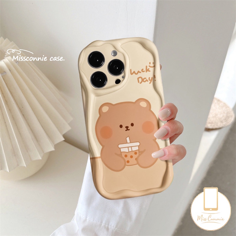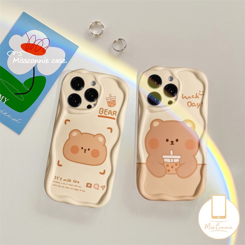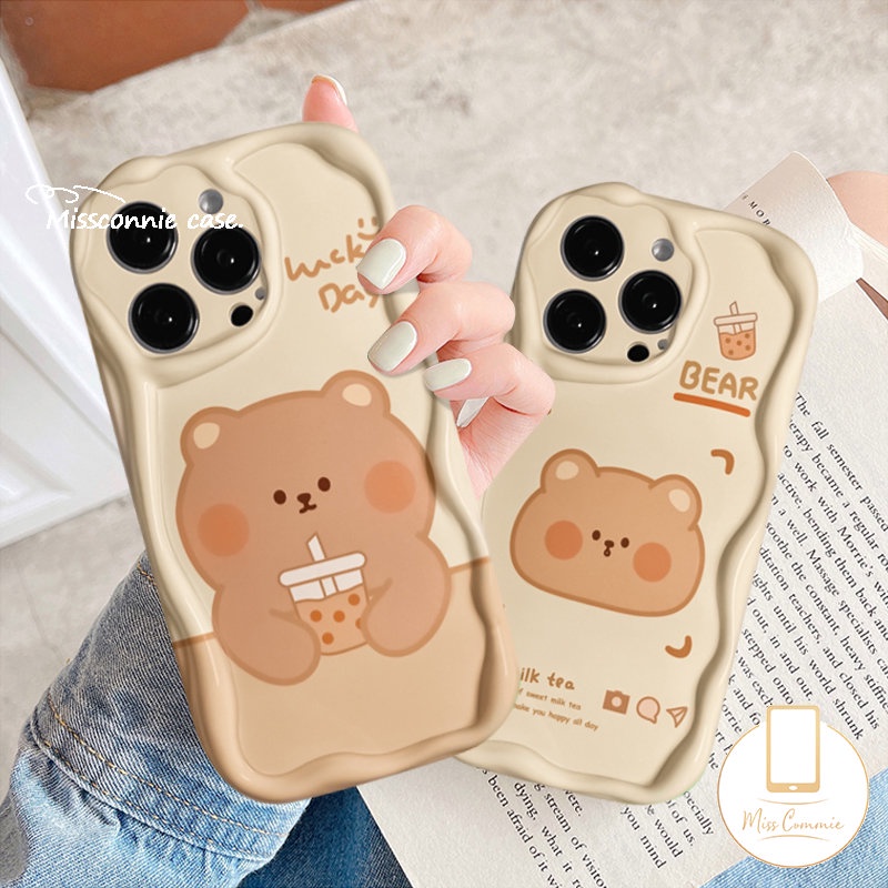 Untuk Realme C35 C55 C15 C20 C21Y 5i 5 7i 6 5S C25Y C17 C25s C20A C33 C3 C21 C30 C11 2020 C31 C25 C12 C1 2021 Kartun Beruang Lucu Teh Susu 3D Tepi Bergelombang Lengkung Mengkilap Lembut Tpu Case