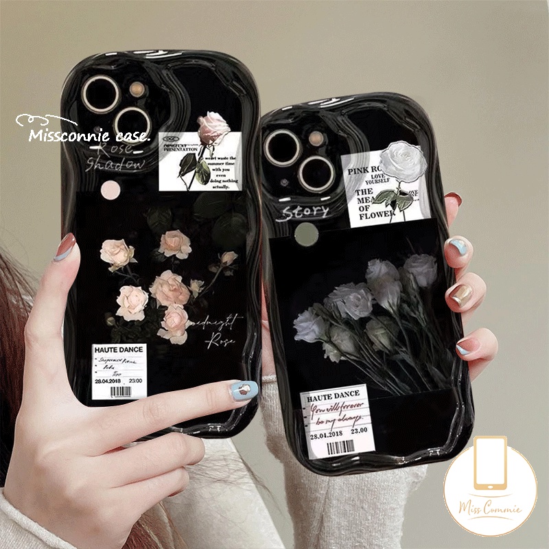 Untuk Realme C55 C35 C31 C20 C11 2020 C33 C20A C25Y C30 C21 5 7i 6 5i 5S C17 C21Y C25 C3 C15 C25s C12 C11 2021 Lukisan Minyak Bunga Mawar 3D Tepi Bergelombang Melengkung Mengkilap Lembut Label Case