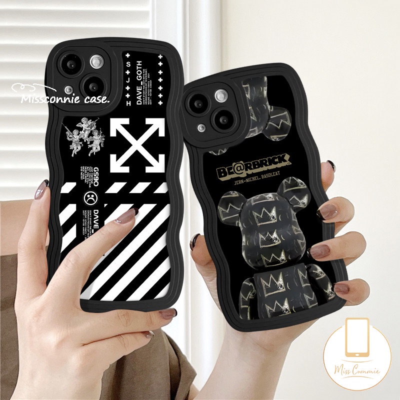 Untuk Samsung A12 A13 A14 A04 A50s A20 A52s A23 A50 A04E A22 A03s A31 A02s A11 A33 A30s A21s A04s A53 A52 A32 M22 A51 M32 Tepi Bergelombang Trendi Merek OFF-Putih Beruang Kekerasan Soft Case
