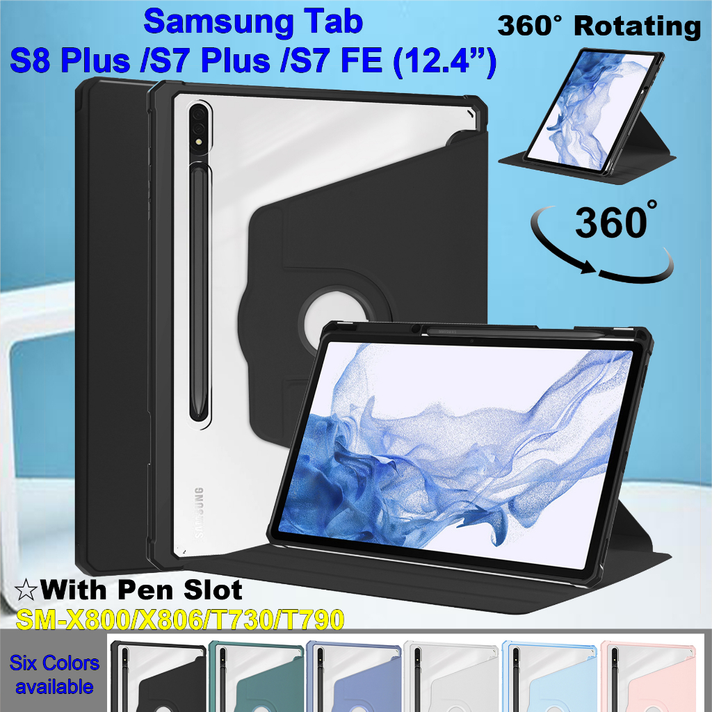 Detail Untuk Samsung Galaxy Tab S7 FE S8 Plus S8+S7+12.4 "SM-X800 SM-X806 SM-T730 SM-T733 SM-T736B SM-T970 SM-T976B Fashion360° Rotating Acrylic Clear Cover Pen Stand Tablet Flip Case