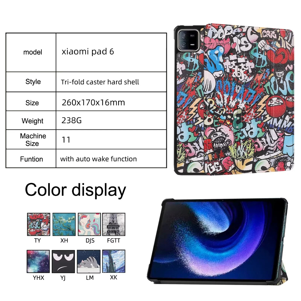 Detail Untuk Xiaomi Pad6 (2023) 11.0 "Mi Pad6 Pro Kualitas Tinggi Tablet Perlindungan Case Casing Fashion Dicat Pola Tri-fold Custer Flip Stand Leather Cover