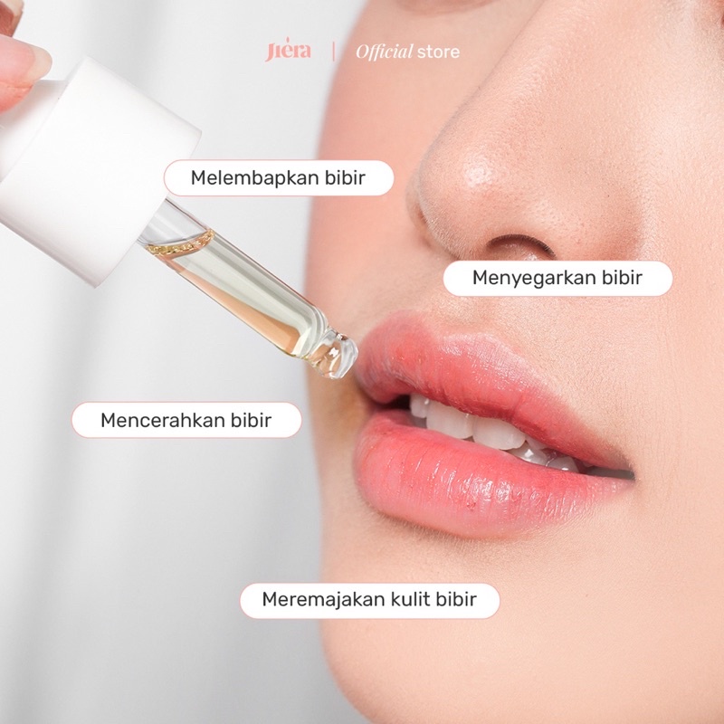 BPOM RI NA18211300873 Natural Lip Serum by Jiera Pertama No.1 di Indonesia Khasiat Ampuh 3P (Pemerah, Pelembab, Pencerah) Pada Bibir Tanpa Efek Samping Bahan 100% Alami - Isi Kemasan 10ml #PindahkeYangNatural #TanpaEfekSamping . Sudah Banyak Yang Membuktikan Khasiatnya Alami Dengan Produk Jiera Ini.... ✔ MEMERAHKAN dan MENCERAHKAN Bibir Tanpa Efek Samping ✔ Menjadikan Tekstur Kulit Bibir Lebih LEMBUT ✔ Menjaga KELEMBABAN KULIT ✔ MENUTRISI Bibir Luar dan Dalam Dengan Kandungan Vitamin E dan Vitamin K ✔ MENCEGAH IRITASI Pada Bibir ✔ Membantu Mempercepat PEMULIHAN LUKA Pada Bibir (Mempercepat Regenerasi Sel) . Cara Pakai : Oleskan Jiera Natural Lip Serum pada bibir secara tipis. pijat lembut bagian bawah, ujung dan bagian atas bibir, lalu biarkan hingga meresap. Gunakan 3 sampai 4 kali sehari untuk mendapatkan hasil maksimal (dianjurkan pagi sebelum berkativitas dan malam sebelum tidur) . Ingredients : Oleic Acid (and), Linoleic Acid, (and) Palmitic acid, (and), Strearic acid, (and), α-Linolenic acid, (and) Vitamin E, (and) Vitamin K, (and) Saffron Extracted Flowers