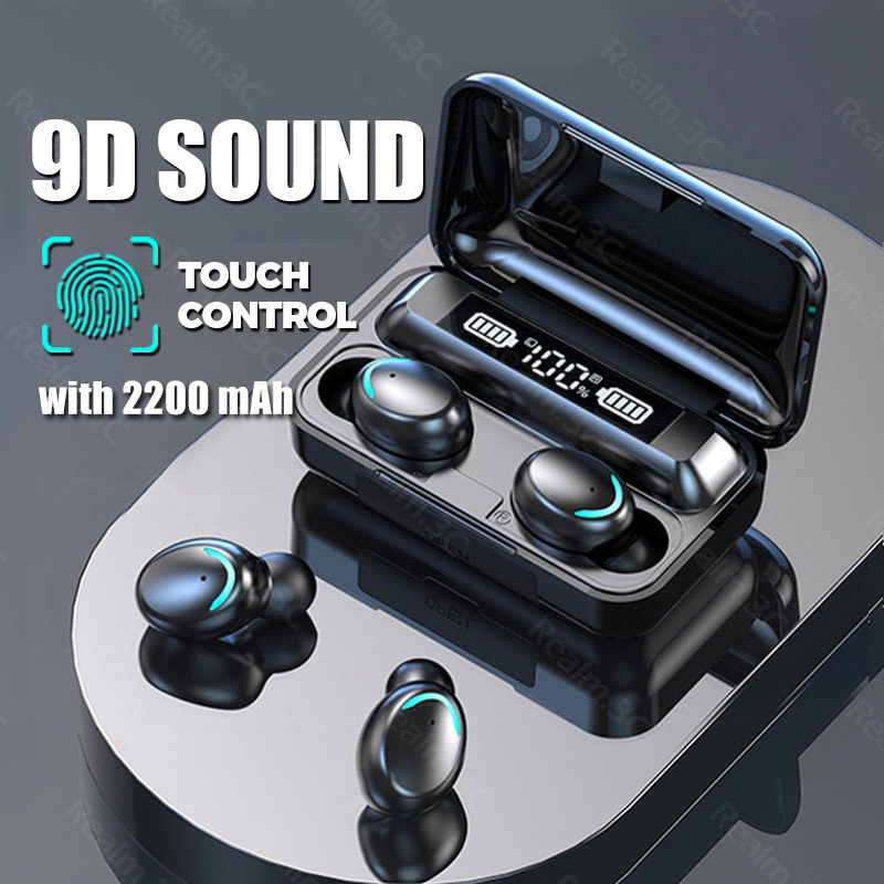 Handphone & Aksesoris > Audio Handphone > Earphone, Headphone & Headset > Upgrade Baru F9-5 Tampilan LED TWS Headset Bluetooth with Mic Sentuh Olahraga Tahan Air Henset Bloetooth HiFi Stereo Wireless Earphone Bluetooth