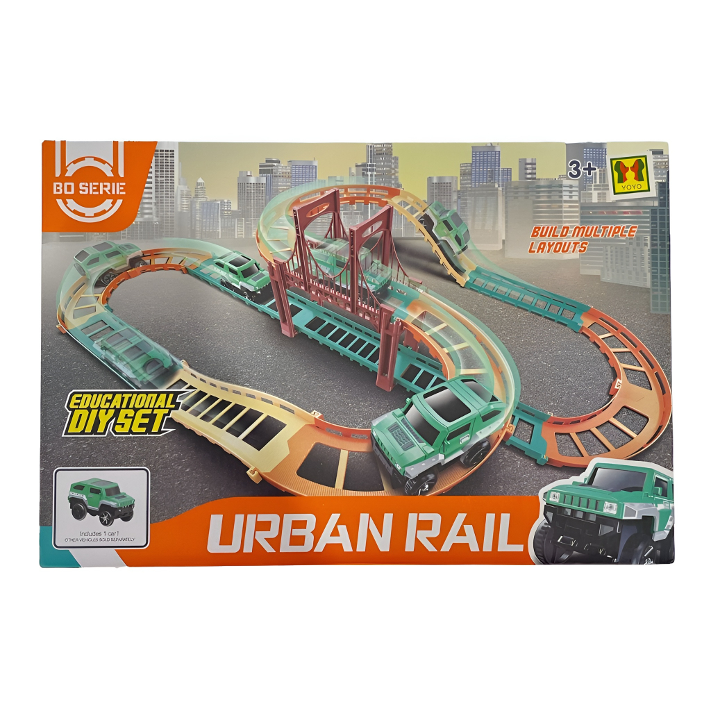 Urban Rail adalah salah satu koleksi mainan track mobil mobilan anak laki-laki, anak bisa bermain sambil belajar menyusun track lintasan Mobil Jeep. Track dengan sebuah mobil menggunakan baterai , sehingga membuat anak tidak bosan memainkannya .