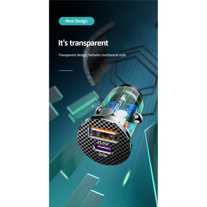 Handphone & Aksesoris > Kabel, Charger, & Konverter > Kabel, Charger & Adaptor Lainnya > USAMS Car Charger Dual Port USB C+USB Charger Mobil Fast Charge 42.5W