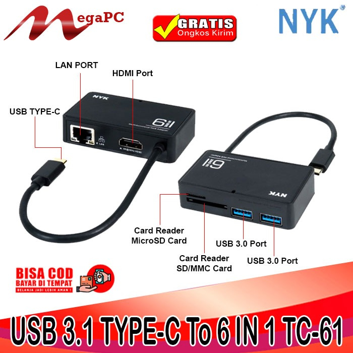 USB 3.1 NYK Type C HUB 6 in 1 TC-61 LAN HDMI Card Reader USB PortUSB 3.1 NYK Type C HUB 6 in 1 TC-61 LAN HDMI Card Reader USB PortUSB 3.1 NYK Type C HUB 6 in 1 TC-61 LAN HDMI Card Reader USB PortUSB 3.1 NYK Type C HUB 6 in 1 TC-61 LAN HDMI Card Reader USB Port