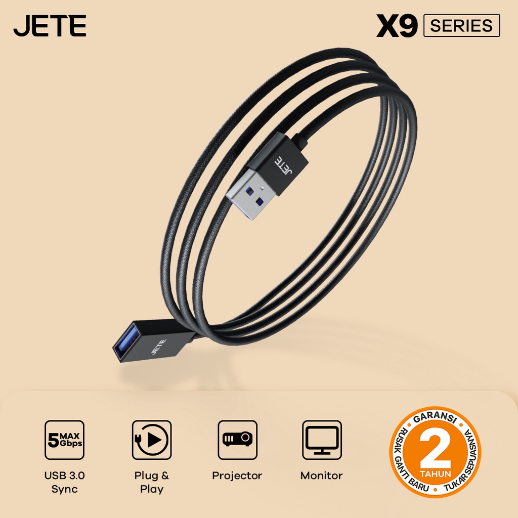 Komputer & Aksesoris > Aksesoris Desktop & Laptop > Aksesoris Desktop & Laptop Lainnya > USB Extension 1M USB 3.0 Up to 5Gbps Kabel JETE X9 Compatible with Mouse Flashdisk Komputer and Laptop - Konverter Usb - Garansi 2 Tahun