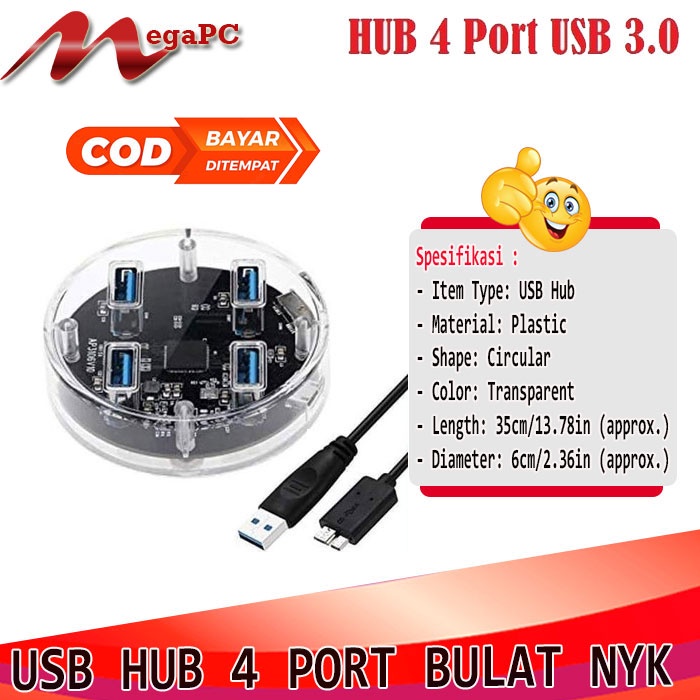 Detail USB HUB 4 PORT NYK USB 3.0 BULAT TRANSPARANT