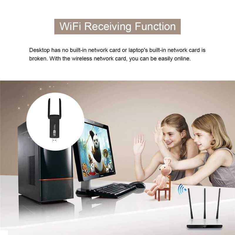 2.4 GHz & 5 GHz Dongle WiFi ini sudah menggunakan protokol 802.11AC yang dapat menggunakan sinyal 2.4 dan 5 GHz. Masing-masing sinyal ini memiliki speed yang berbeda. 5 GHz mencapai 866 Mbps sedangkan 2.4GHz mencapai 300 Mbps namun memiliki jangkauan yang lebih luas.