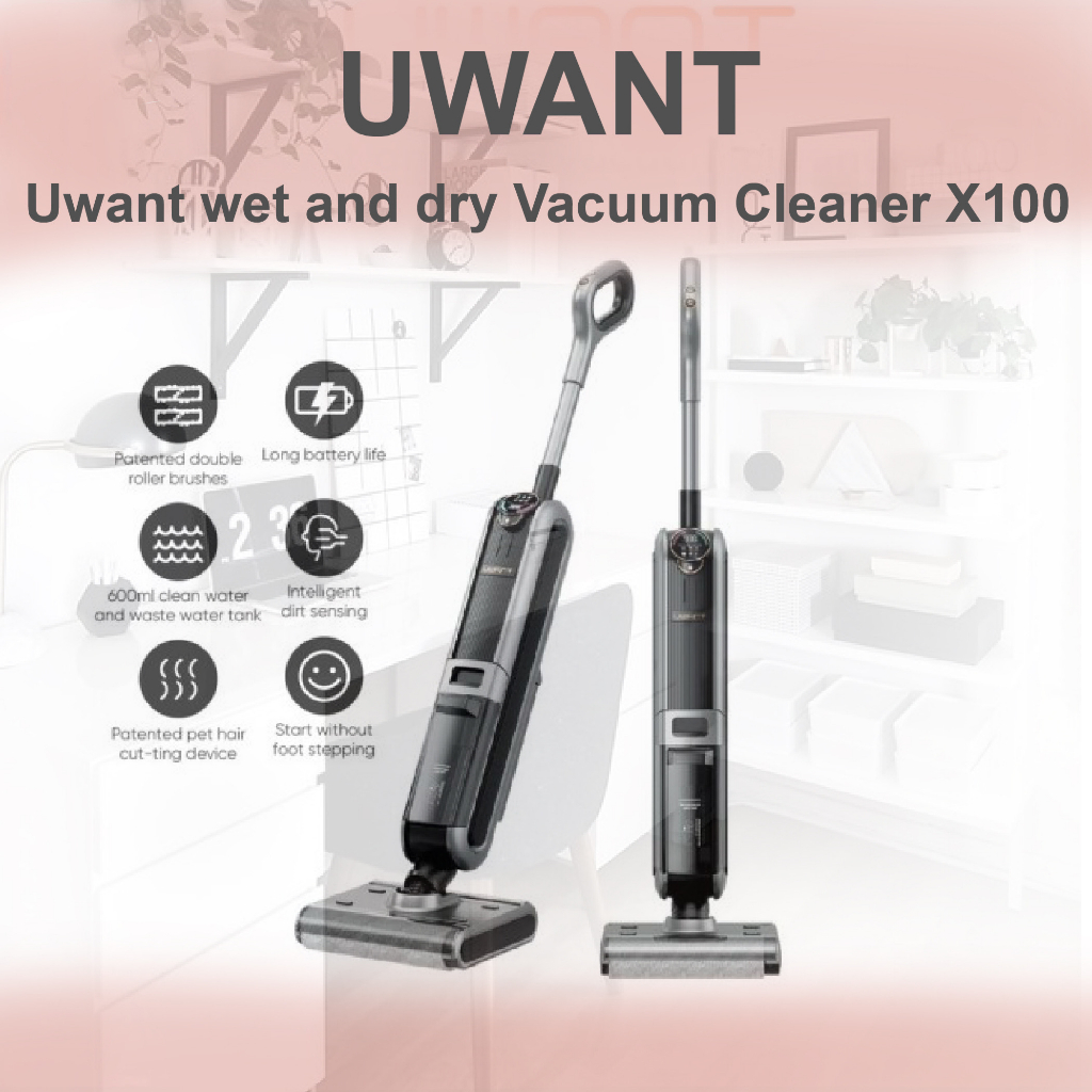 UWant X100 All-in-One Multi-Surface Wet Dry Vacuum Cleaning Master Patented double roller brushes│Patentecd pet hair cutting device│Long battery life