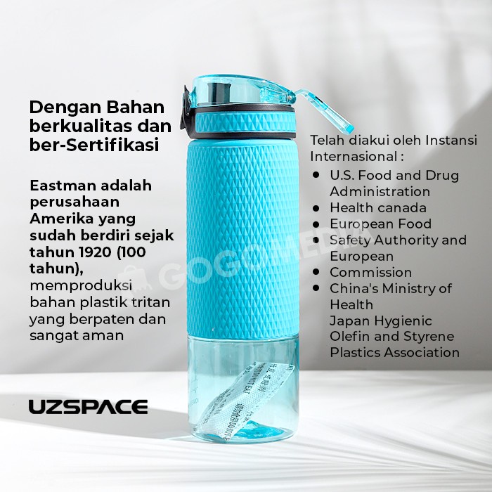 Perlengkapan Rumah > Peralatan Makan > Botol Minum & Aksesoris > UZSPACE 5057 Botol Air Minum Ion Energy 700ml Tritan Eastman BPA Free 100% ORIGINAL US Asli Aman Anti Tumpah Bersertifikat FDA Tumbler Shaker Olahraga Sepeda Gym Sport