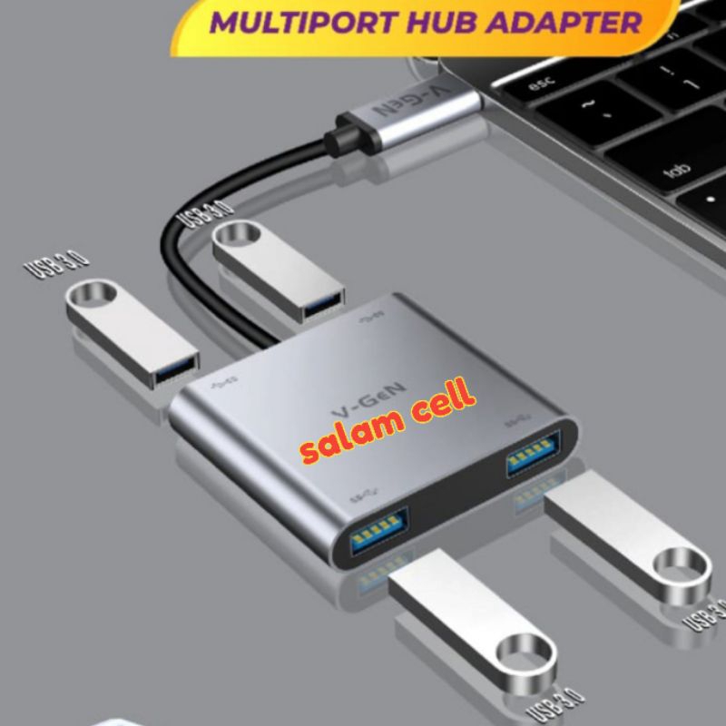 Komputer & Aksesoris > Aksesoris Desktop & Laptop > USB HUB & Card Reader > V-GEN VHB-02 Type-C to USB 3.0 Super Speed USB Hub Original Vgen Vhb02 Garansi Resmi