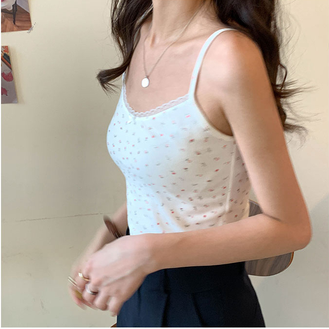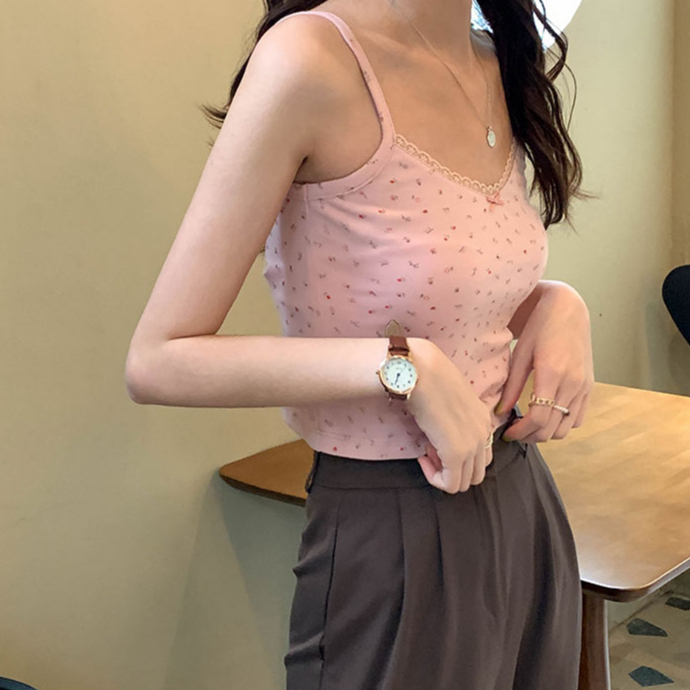 Detail V-neck Tanpa Lengan Knit All Match Top Lace Vest
