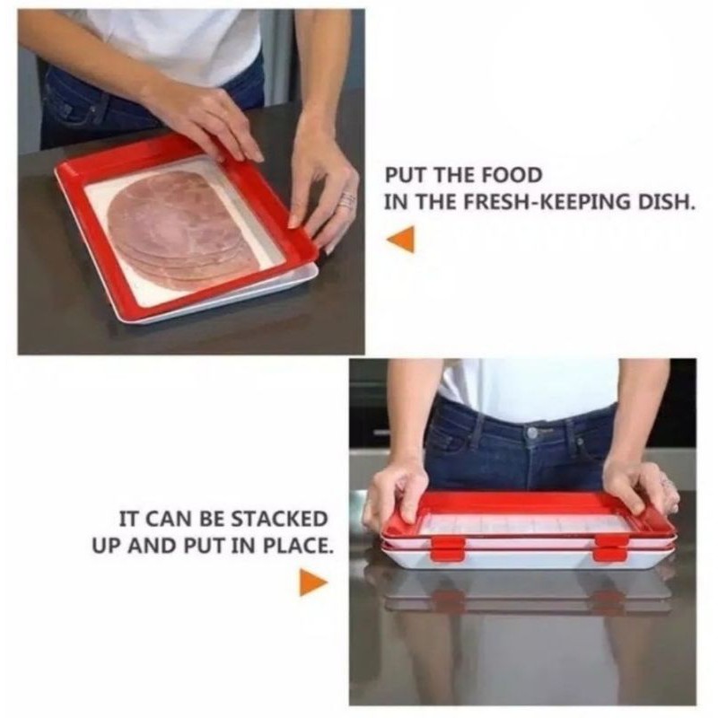 - Tray elastik ajaib ini bisa menyimpan bahan makanan selalu fresh untuk waktu yang lama selama di kulkas. Tray ini di lengkapi plastik yang elastic yang di ciptakan oleh Black science and technology elastic film sehingga tidak muda sobek saat menyimpan makanan yg mempunyai permukaan kasar atau agak tajam. - Dilengkapi pengunci dibagian kanan kiri, sehingga bahan makanan akan kedap dan tahan lama. Selalu fresh!!! - Tray tipis ini bisa di susun tumpuk di kulkas sehingga tidak menghabiskan ruang kulkas, apalagi yang kulkasnya kecil, ini sangat cocok digunakan. - Hemat biaya styrofoam dan plastik wrap, sebab tray ini bisa di cuci dan digunakan berulang kali dalam jangka waktu yang lama