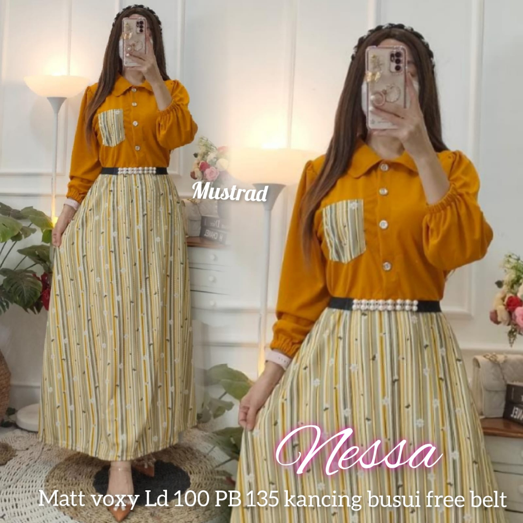 gamis voxy ld 100 pb 135 busui kancing estimasi pemakaian bb 40kilo sampai bb 70kiloan bahan melar halus