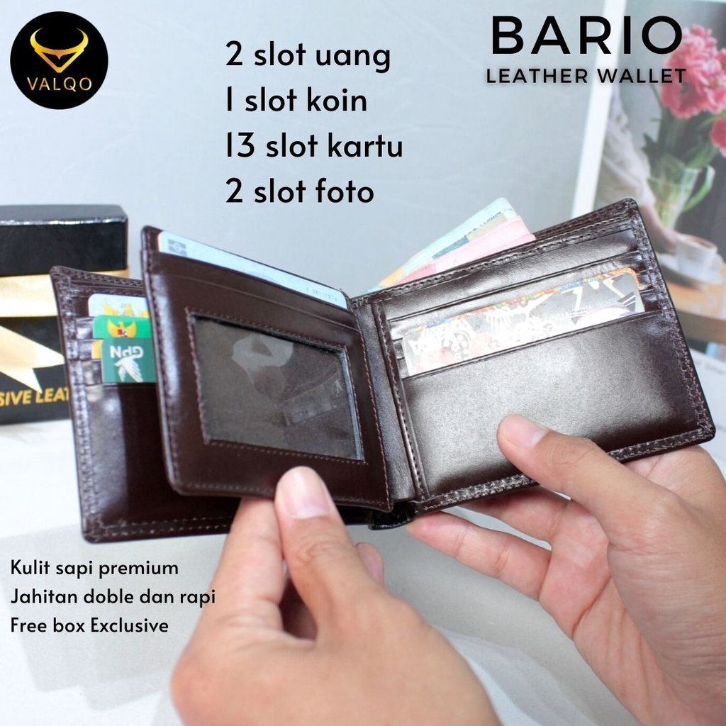 Video perkenalan produk [VALQO] Dompet BARIO Kulit Sapi Pria Laki Cowok 13 Slot Kartu 2 Foto. Sumber: Shopee.