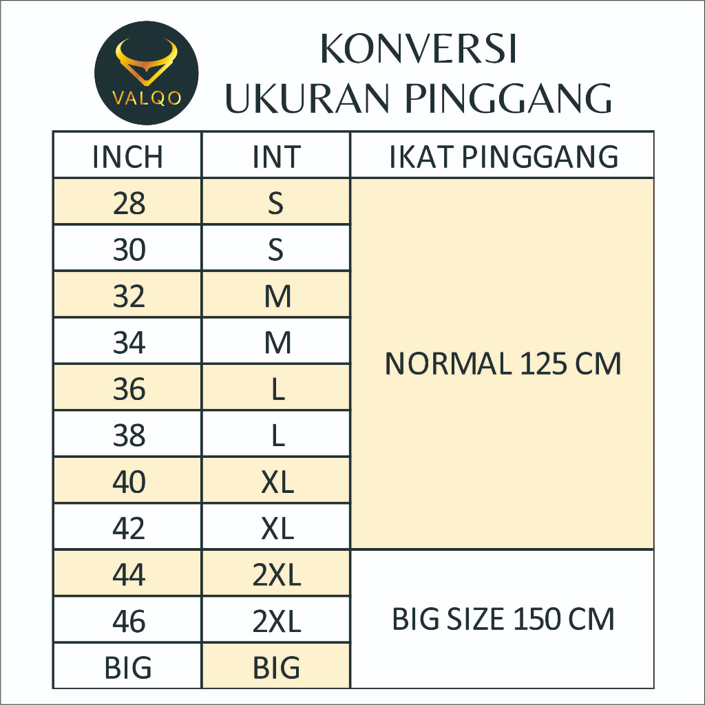 UKURAN Panjang Normal 125 cm (Pinggang 28 -42) Panjang Big Size 150 cm (Pinggan 43 - 48) Lebar 3,6 cm