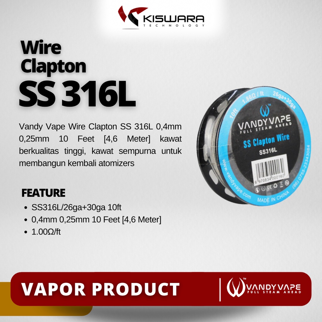 Detail Vandy Vape Wire Clapton SS 316L 0,4mm 0,25mm 10 Feet [4,6 Meter] KiswaraBandung