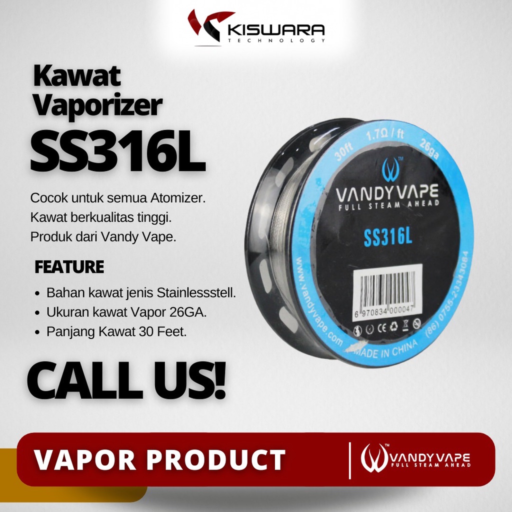 Detail Vandy Vape Wire Stainless Steel SS 316L 26 GA 30 Feet [9.15 Meter] KiswaraBandung