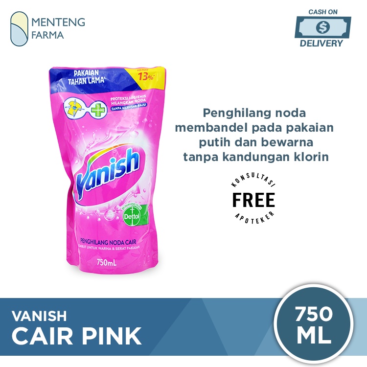 Vanish Pink Liquid membantu menghilangkan noda membandel pada pakaian juga membunuh kuman dan bakteri. Keutamaan vanish pink adalah dapat digunakan pada pakaian putih dan berwarna. Dengan formula Super Power Lift Agent yang lembut dan tidak mengandung klorin, vanish bekerja menjaga warna pakaian tetap cemerlang tanpa menyebabkan serat pakaian cepat rusak meskipun dicuci berkali-kali.