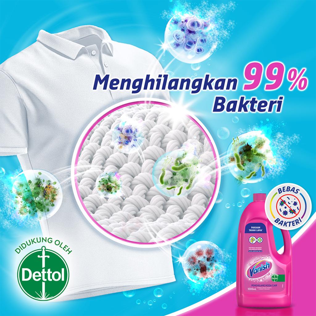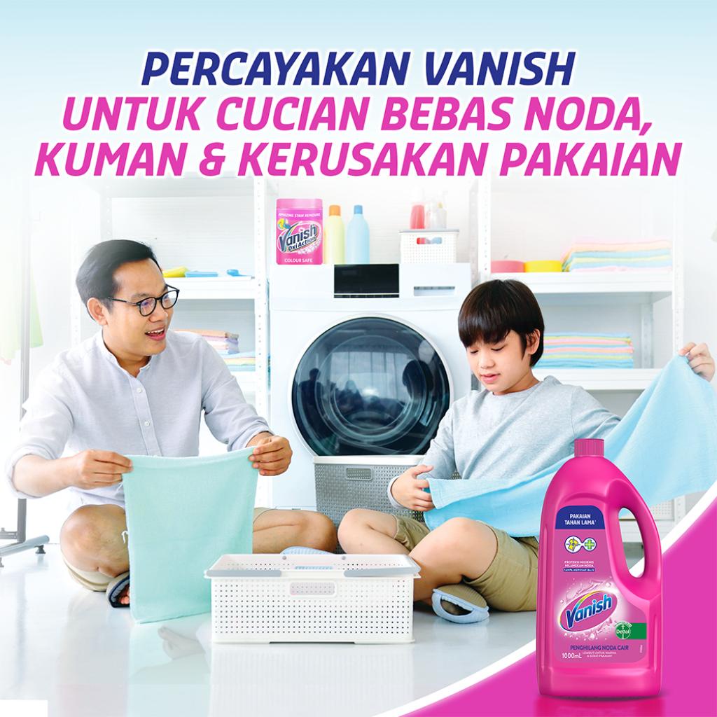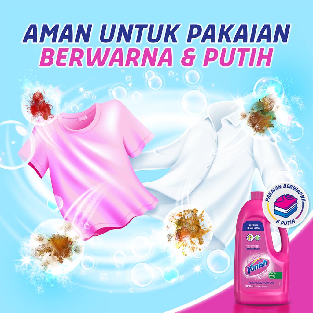 Vanish Cair menghilangkan noda membandel yang aman bagi warna dan serat pakaian.