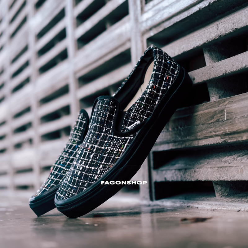 Detail VANS SLIP ON WOVEN PLAID BLACK CLASSIC ORIGINAL 100%