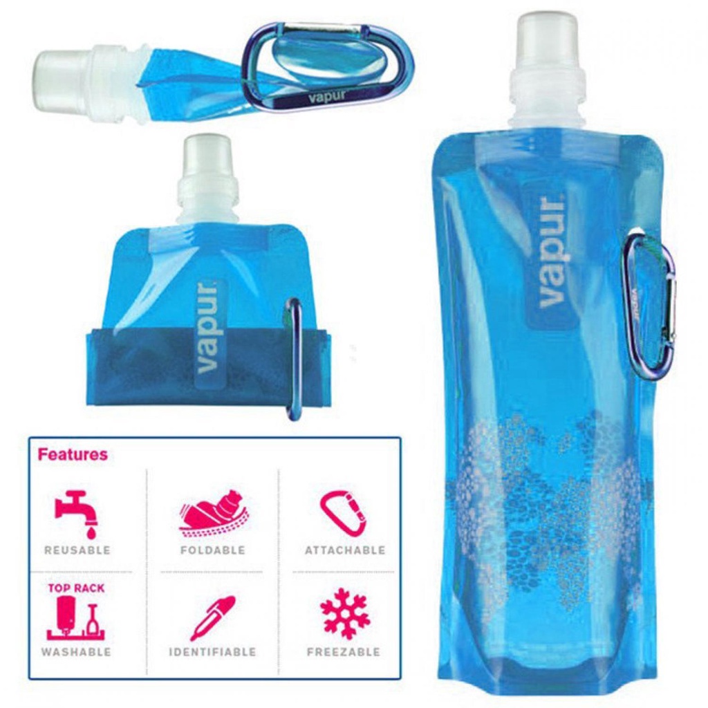 Spesifikasi VAPUR Botol Minum Lipat Camping Hiking Drinking Bottle 500ml - V5 Isi : 500 ml atau 16 oz Material : Plastik Dimensi : 26 x 12 cm